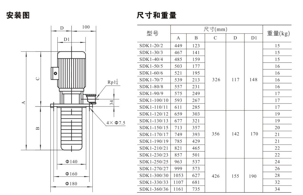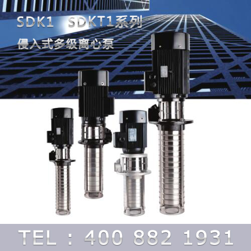 SDK1/SDKT1為配用標(biāo)準(zhǔn)電機的非自吸立式多級離心泵,電機軸和泵軸用聯(lián)軸器直接聯(lián)接的結(jié)構(gòu)。為滿足水槽或容器的安裝深度,可安裝空套的腔體來改變泵本身的侵入深度。